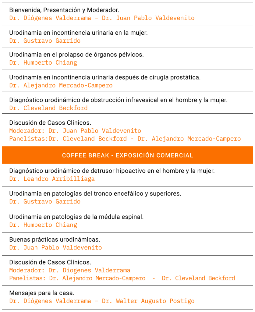 Profesionales con conocimientos básicos de urodinamia: Urólogos, Ginecólogos, Residentes de Urología y de Obstetricia y Ginecología, Fellows de Urología Funcional y de Uroginecología, Enfermeras de Urodinamia y Kinesiólogos.